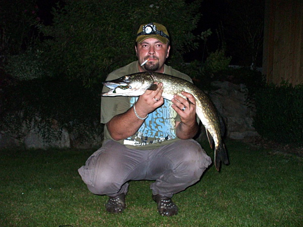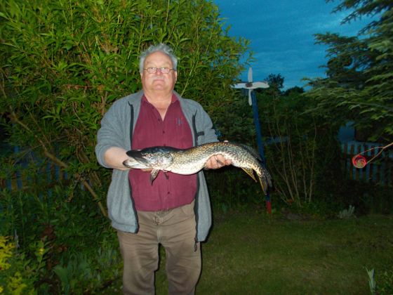 80 cm Hecht mit einem Eigenbaublinker gefangen. Das Gewicht lag mit 3400g knapp unter der 7 Pfundmarke.