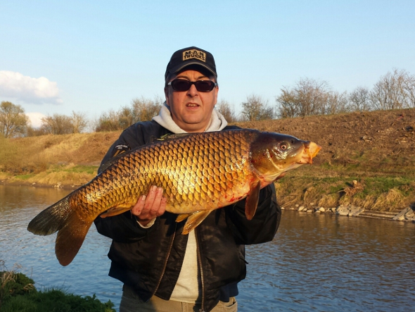 Siegi Muhr fing am 27.03.2014 einen Schuppenkarpfen mit 77 cm und einem Gewicht von 7,7 kg, im Stadtwasser
