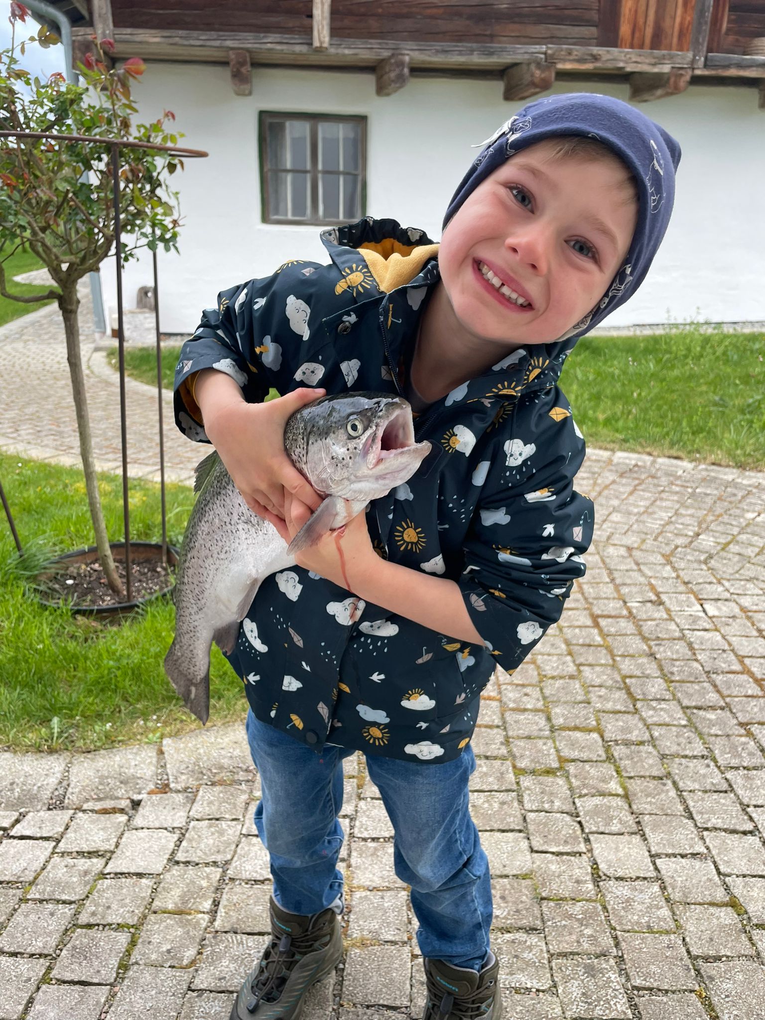 Bachforelle mit 38 cm gefangen von Troiber Christoph. Bild zeigt den stolzen Sohn Martin!