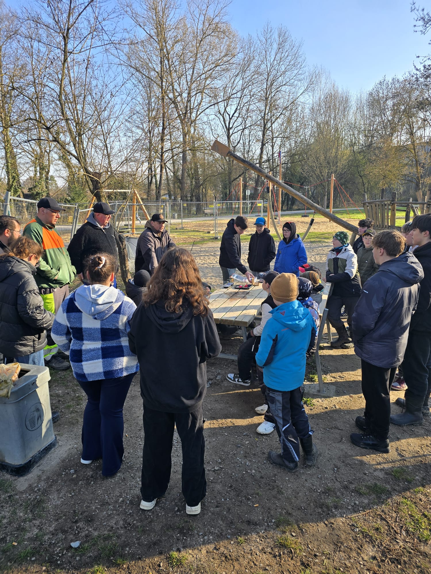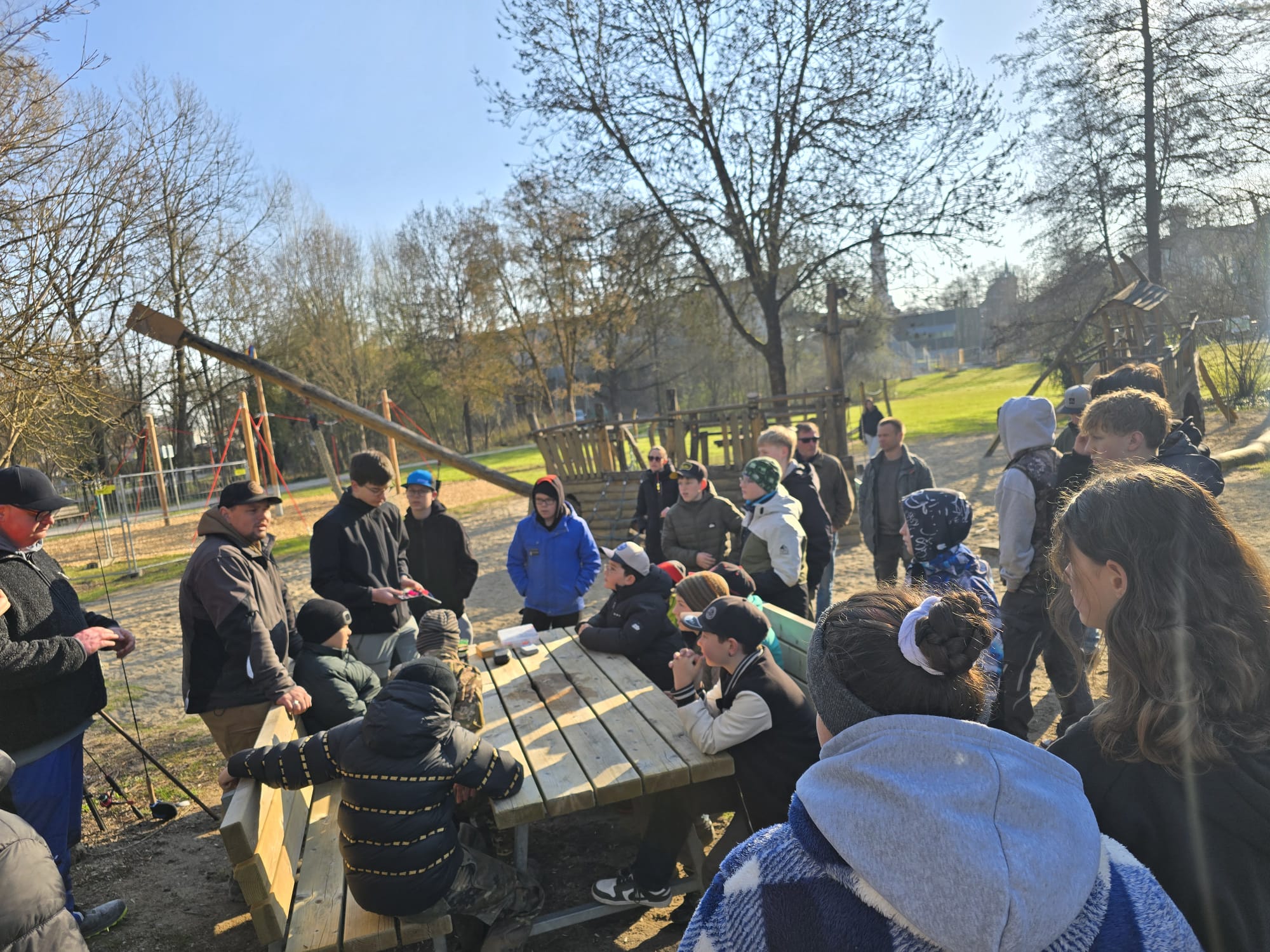 Unser 1. Jugendleiter Bernhard Künzel und das ehemalige Jugendmitglied Jann Kempinger erklärten den Kindern alles Wichtige rund um die Forelle – von Lebensweise über Angelmethoden bis hin zu den richtigen Ködern.