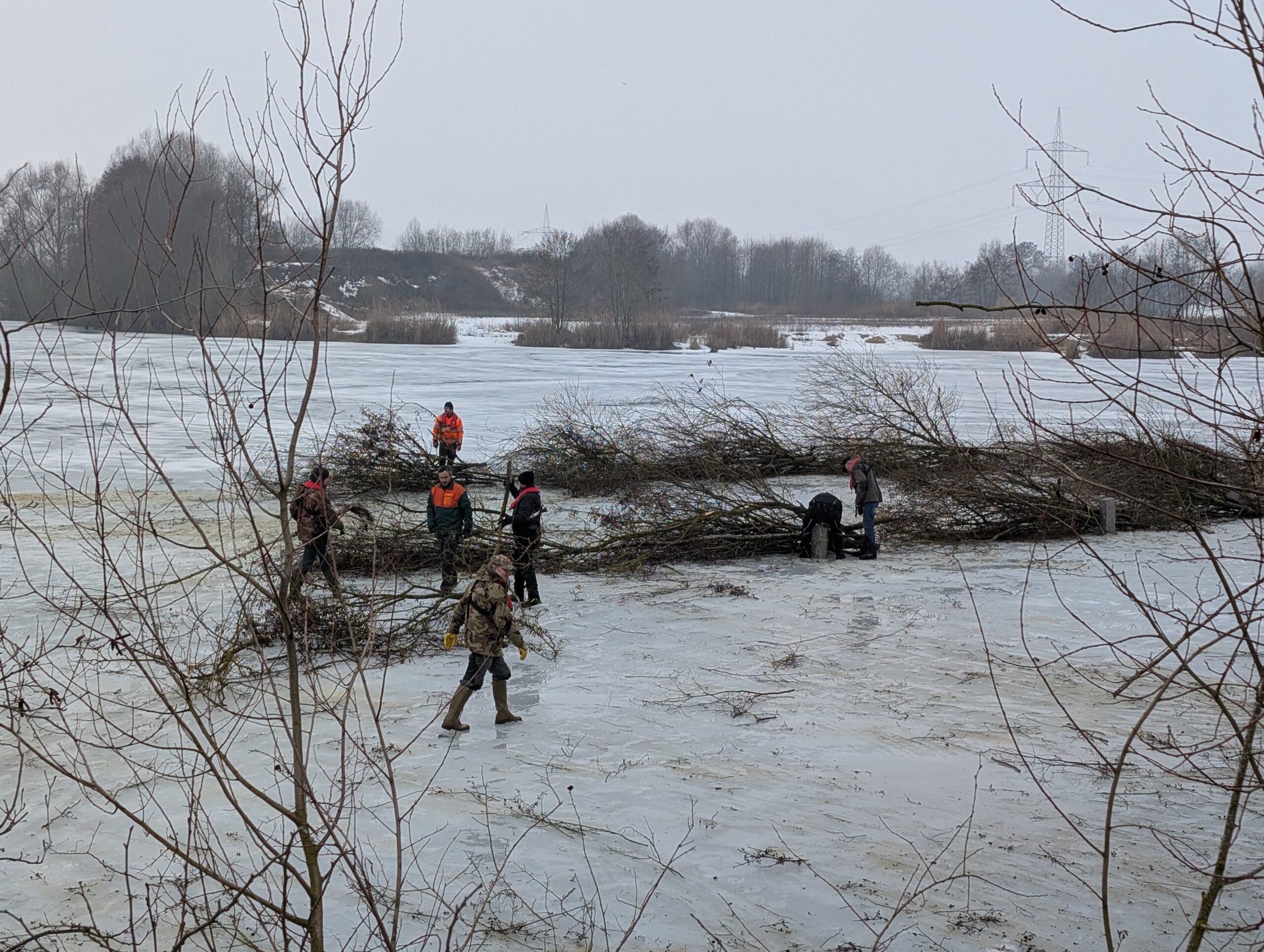 Das dabei anfallende Schnittmaterial wurde jedoch nicht nur entfernt, sondern gezielt naturschutzfachlich genutzt: Aus den Baumkronen und Sträuchern wurden im Gewässer Laichhecken und Schutzzonen angelegt.
