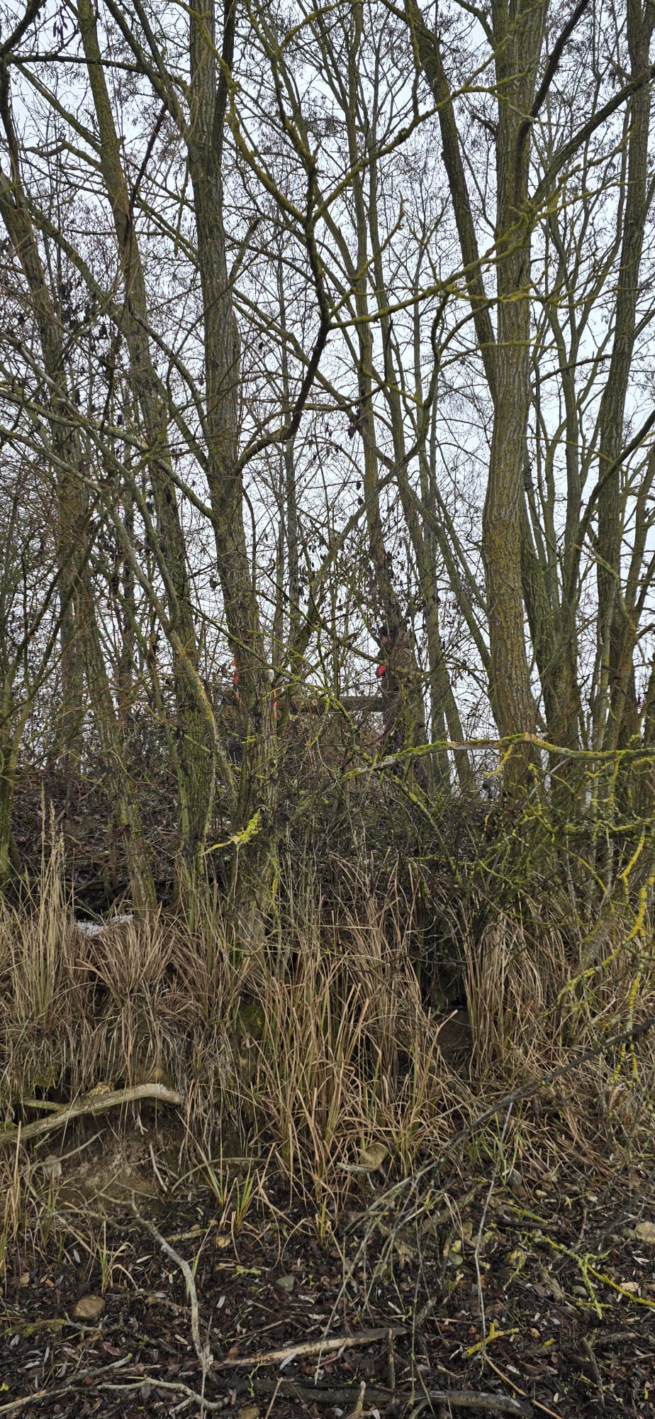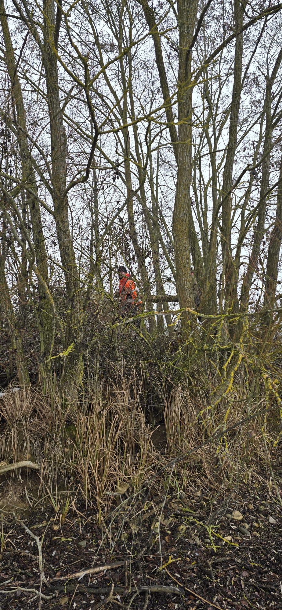 Ziel der Maßnahme war eine sogenannte Ausschneideaktion, bei der ausgewählte Baumkronen und Gebüsche zurückgeschnitten wurden, um bestimmte Angelplätze wieder sicher und zugänglich zu machen.